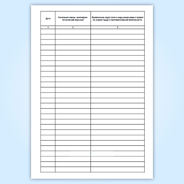 Журнал контроля за состоянием охраны труда и противопожарной безопасности хранится и ведется начальником смены либо инженерно-техническим персоналом соответствующего цеха, участка, лаборатории, который несет ответственность и осуществляет контроль за состоянием охраны труда и противопожарной безопасности.