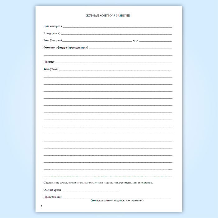 Журнал контроля занятий во взводе (в роте, в батарее) военного училища (кадетского корпуса)