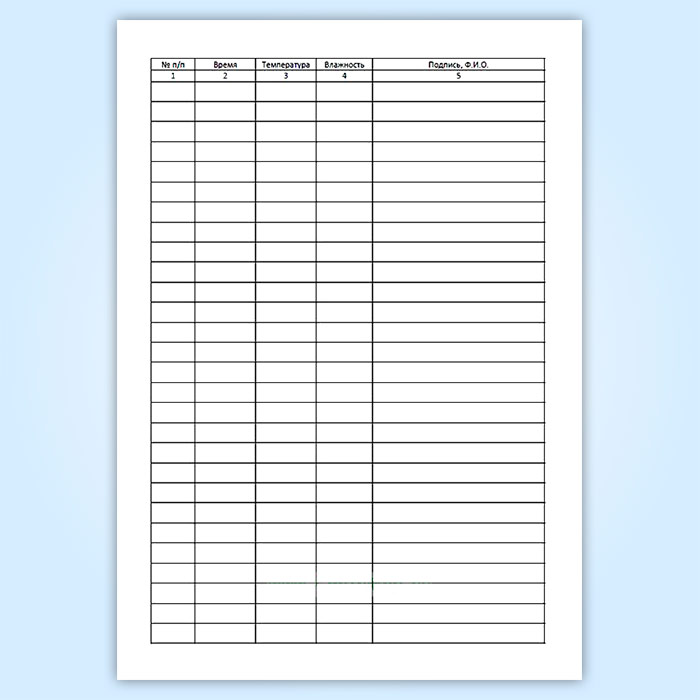 Журнал контроля температуры и влажности