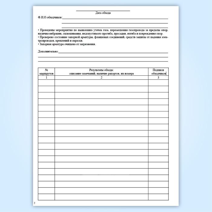 Результаты обхода газопроводов должны отражаться в журнале обхода трассы надземного газопровода.