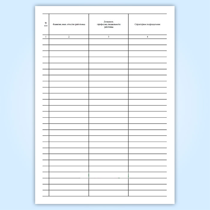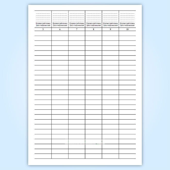 Мы предлагаем журнал с традиционными для кадровой практики графами.