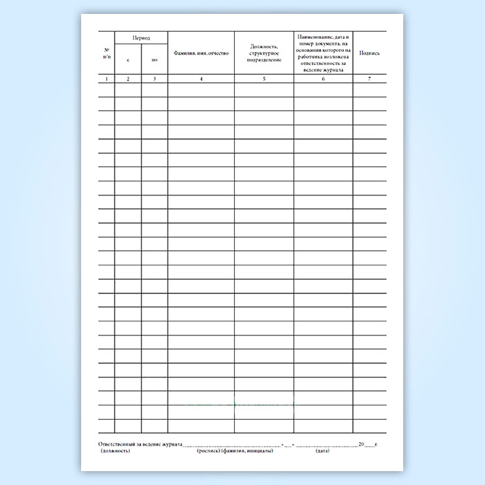 6. Наименование, дата и номер документа, на основании которого на работника возложена ответственность за ведение журнала