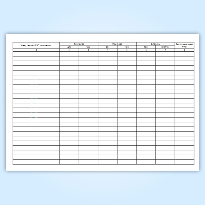 Для оперативного учета проживающих на этаже поэтажный персонал (при наличии службы портье - портье) заполняет журнал.