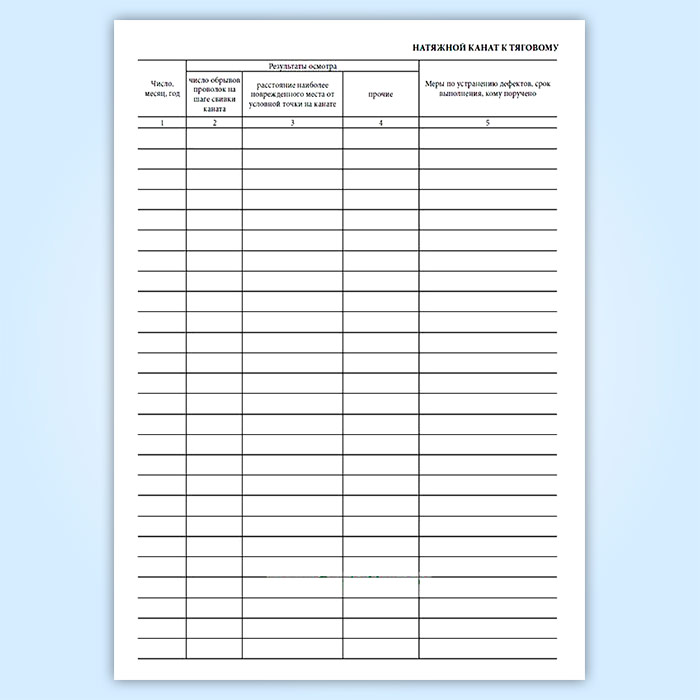 Журнал осмотра и ремонта натяжного каната к тяговому и несуще-тяговому канату по форма 4 содержаит графы: