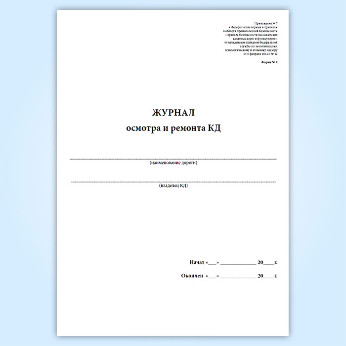 См. также Журнал осмотра и ремонта КД (расширенный), в состав которого включены все формы.