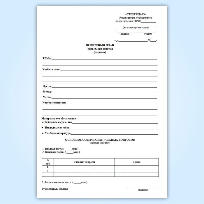 Подробнее о планировании занятий в области ГО и БЖ см. Подготовка и проведение учений и тренировок с нештатными аварийно-спасательными формированиями, работниками организаций и предприятий .