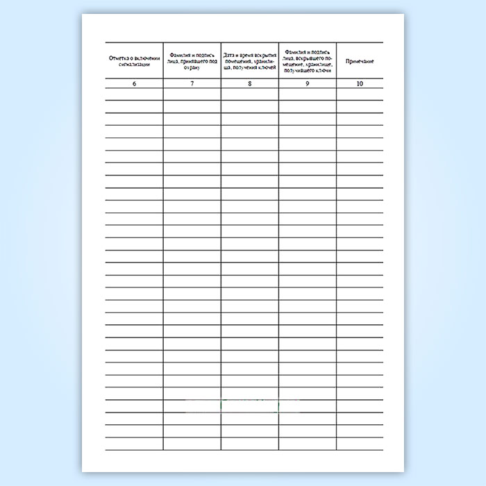 Журнал приема (сдачи) под охрану режимных помещений, спецхранилищ, сейфов (металлических шкафов) и ключей от них