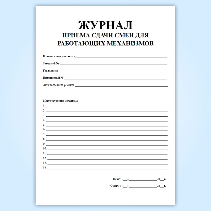 Журнал приема-сдачи смен для работающих на механизмах