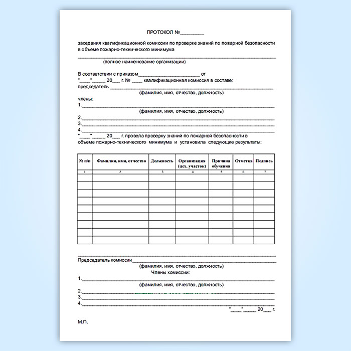 Журнал проверки знаний по пожарной безопасности в объеме пожарно-технического минимума