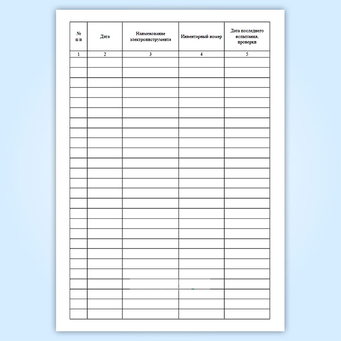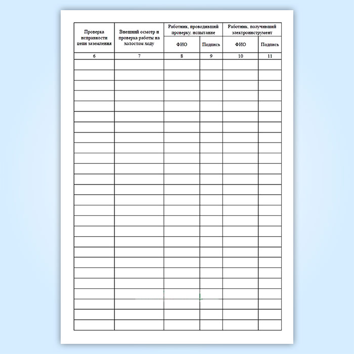 За ведение журнала отвечает лицо, ответственное за сохранность и исправность электроинструмента.