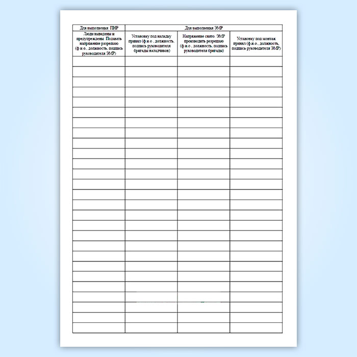В отличии от журнала регистрации разрешений на производство пусконаладочных и электромонтажных работ (графы которого отличаются) журнал производства электромонтажных работ дает не только информацию о выполненных работах, но и позволяет контролировать график электромонтажных работ.