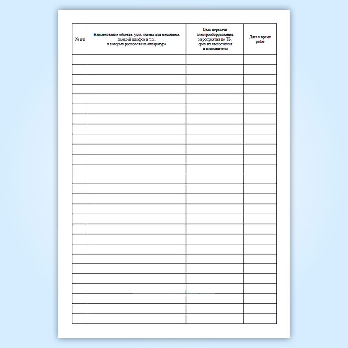 3. Цель передачи электрооборудования, мероприятия по ТБ, срок их выполнения и исполнители