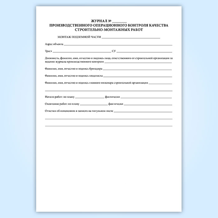 Журнал производственного операционного контроля качества строительно-монтажных работ предназначен для осуществления операционного контроля качества выполнения строительных процессов и производственных операций.