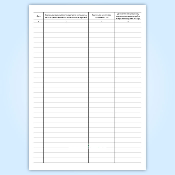 В графу «результаты контроля и оценка качества» должны заноситься указания о том, как и когда исправить допущенные отклонения от требований строительных норм и правил.