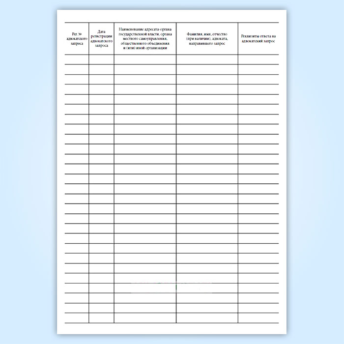 Адвокатский запрос регистрируется в журнале регистрации адвокатских запросов, который ведется адвокатским образованием.