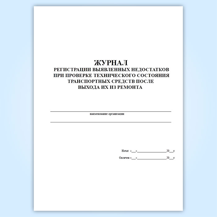 Так же в продаже есть Журнал регистрации выявленных недостатков при проверке технического состояния транспортных средств после выхода их из ремонта с другими графами