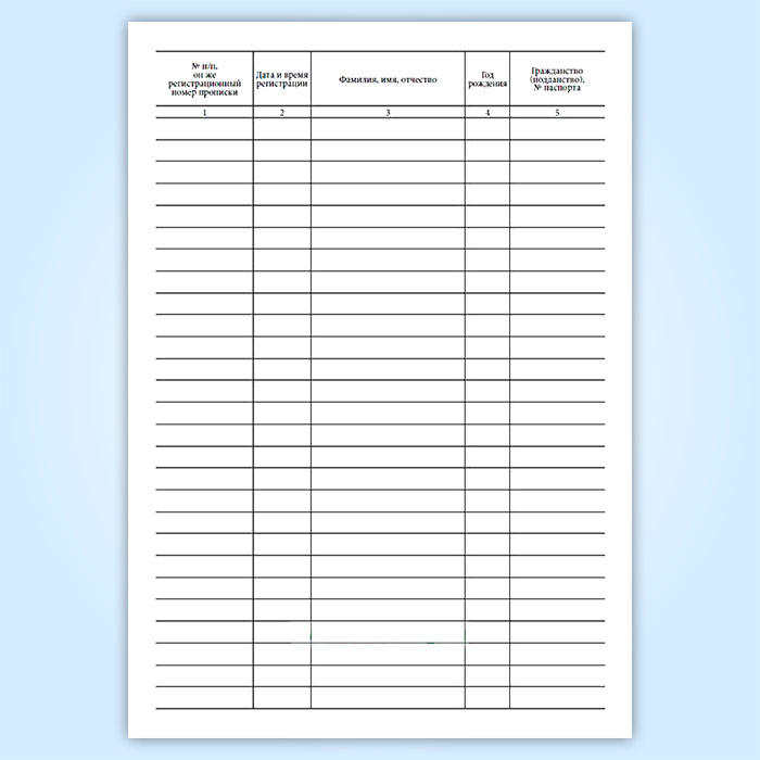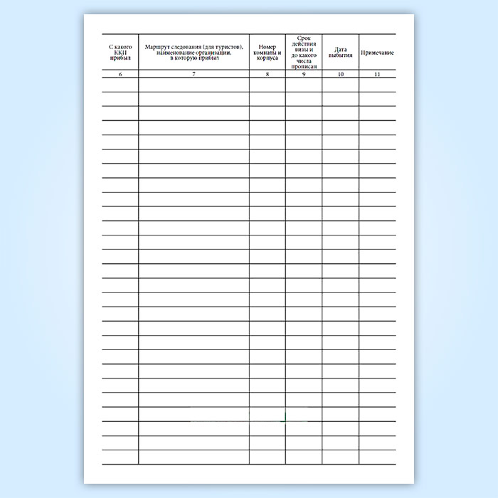 Журнал регистрации иностранных граждан в гостинице (форма 2-Г)