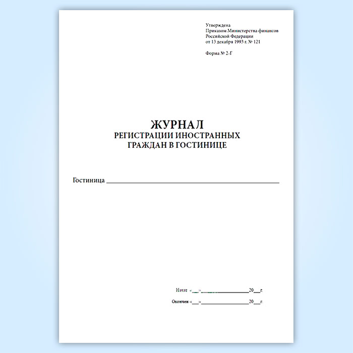 Форма журнала регистрации иностранных граждан в гостинице определяется Приложением к Приказу Минфина РФ от 13.12.1993 N 121 "Об утверждении форм документов строгой отчетности".