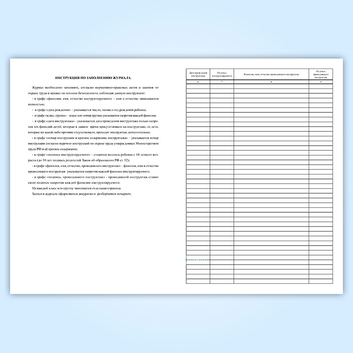 - в графе «подпись инструктируемого» – ставится подпись ребенка с 10 летнего возраста (до 10 лет подпись родителей Закон об образовании РФ ст. 52);