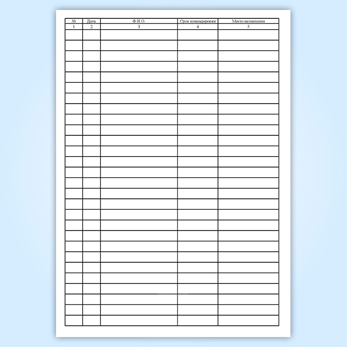 Графы журнала регистрации командировочных удостоверений: