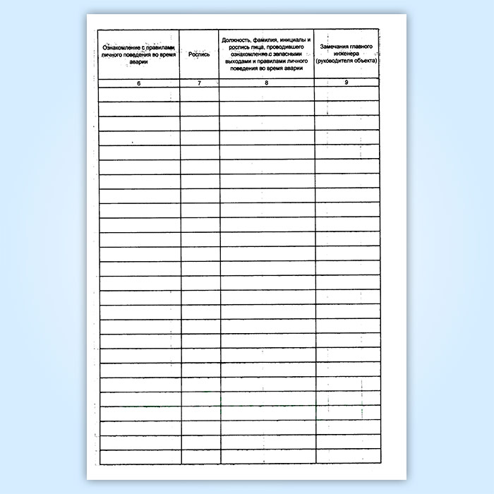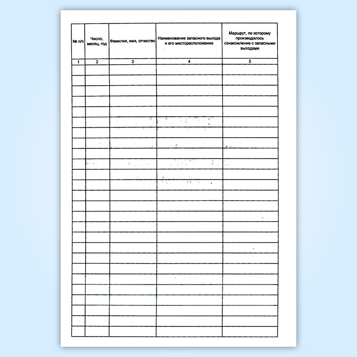 Журнал регистрации ознакомления работников с запасными выходами