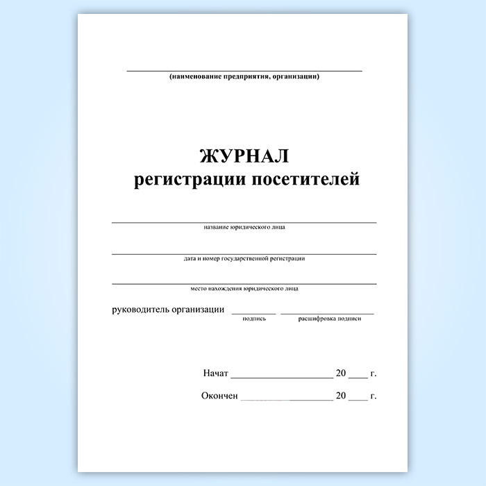 Любая информация, заносима в графы журнала, должна быть написана читаемым подчерком и не должна содержать исправлений или помарок. Изъятие или замена страниц из журнала регистрации посетителей запрещается.