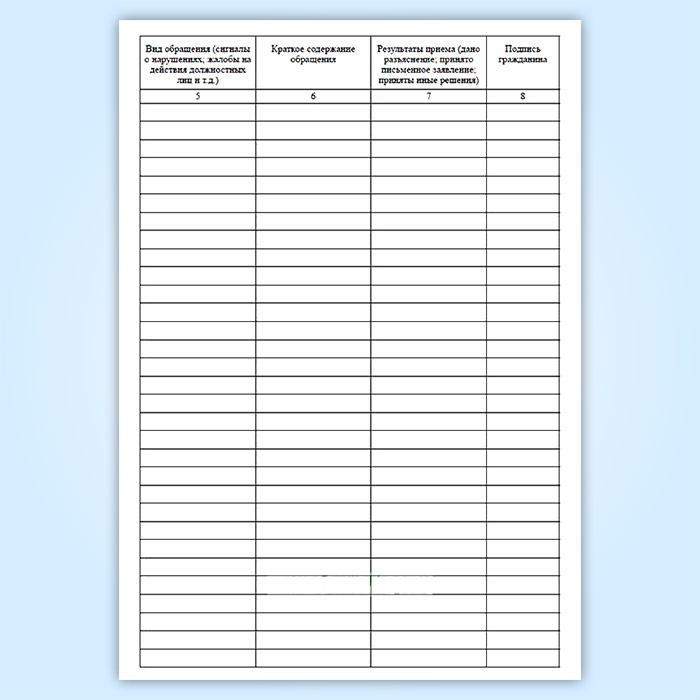 Данные и результаты приема граждан фиксируют в специальном журнале.