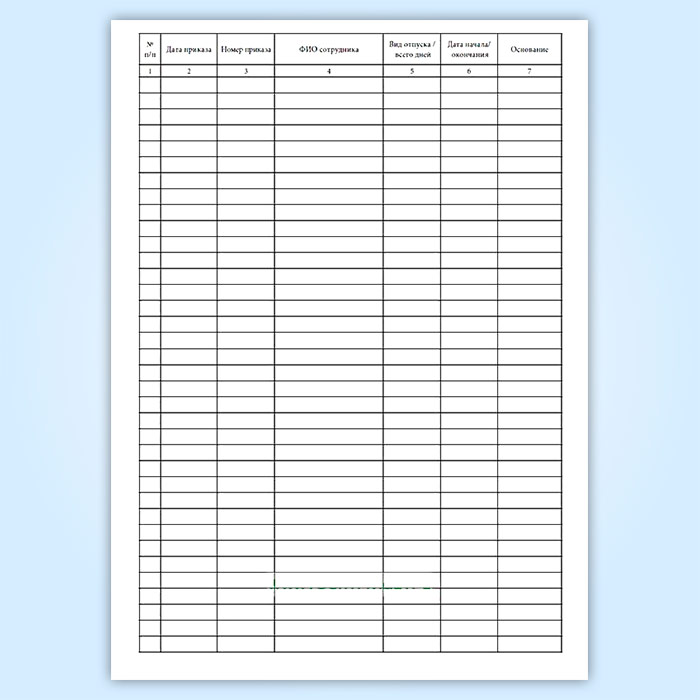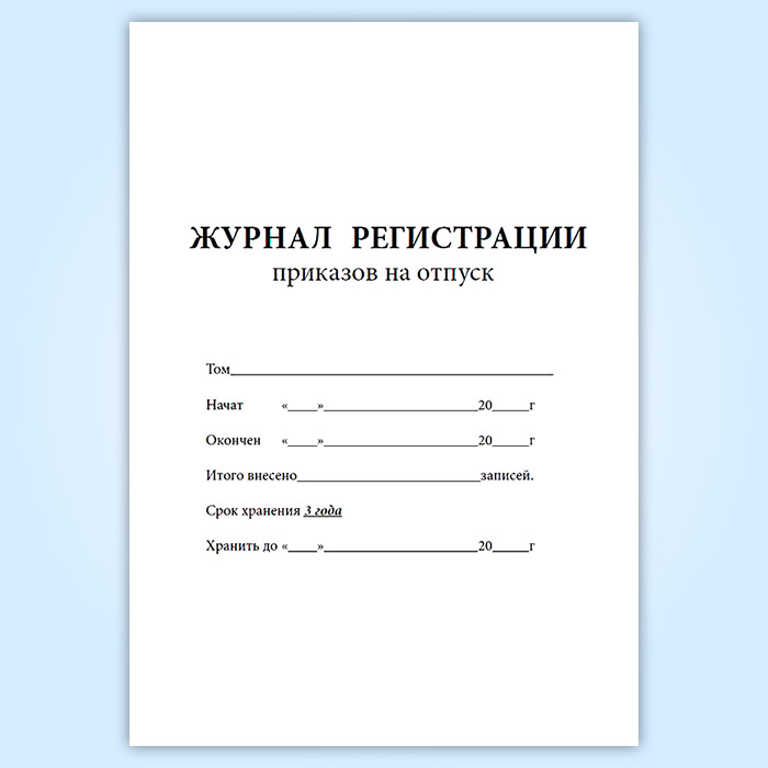 Для учета утверждаемых приказов о предоставлении отпусков персоналу может применяться отдельный журнал регистрации приказов на отпуск.