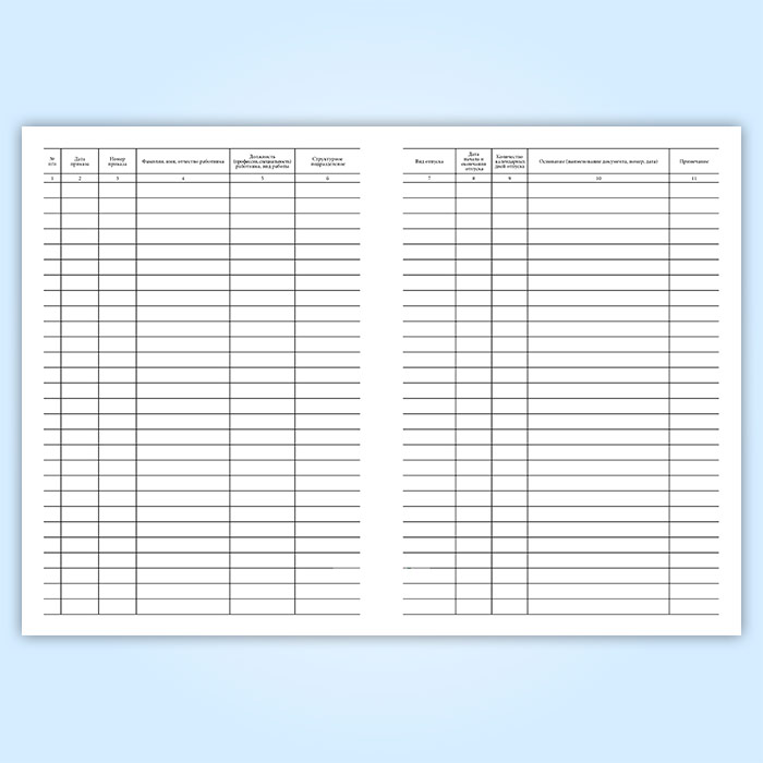 Журнал регистрации приказов о предоставлении отпусков