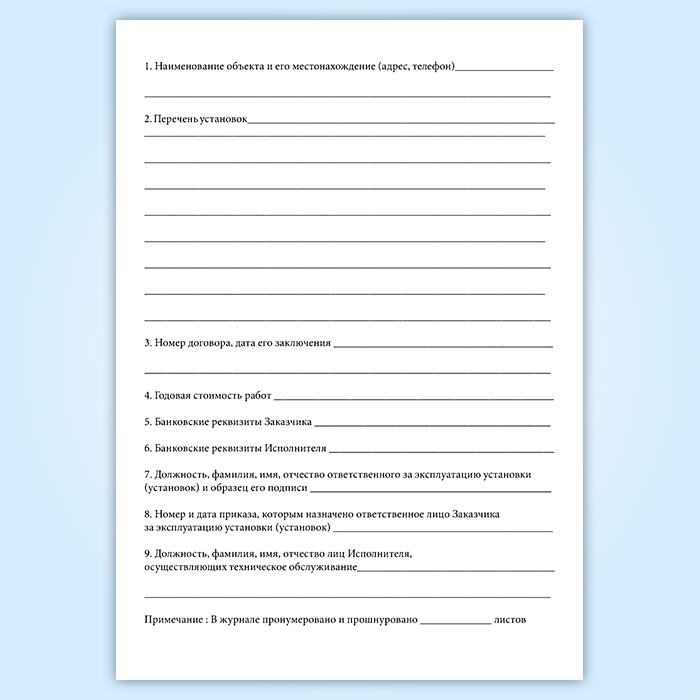 Журнал ведется в организации, непосредственно установившей автоматические установки пожаротушения, дымоудаления, пожарной и охранно-пожарной сигнализации.