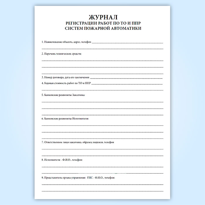 Журнал регистрации работ по ТО и ППР систем пожарной автоматики