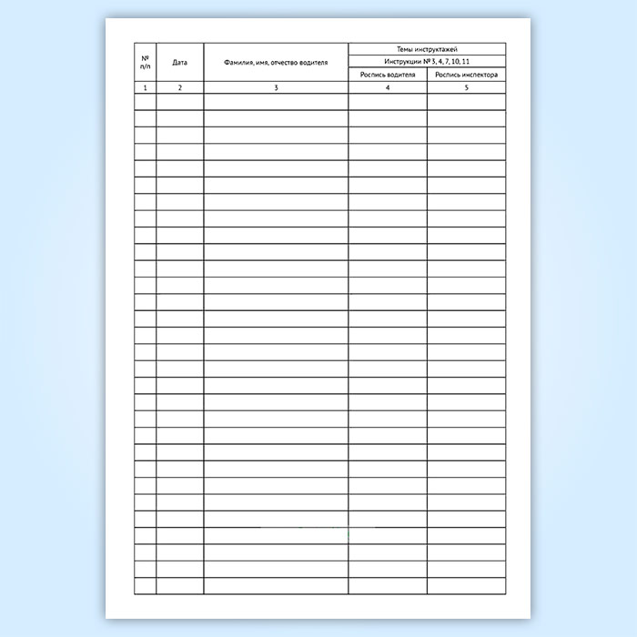 Форма журнала соответствует Приказ Минтранса России от 15.01.2014 N 7 Об утверждении Правил обеспечения безопасности перевозок пассажиров и грузов автомобильным транспортом и городским наземным электрическим транспортом и Перечня мероприятий по подготовке работников юридических лиц и индивидуальных предпринимателей, осуществляющих перевозки автомобильным транспортом и городским наземным электрическим транспортом, к безопасной работе и транспортных средств к безопасной эксплуатации" (Зарегистрировано в Минюсте России 05.06.2014 N 32585)