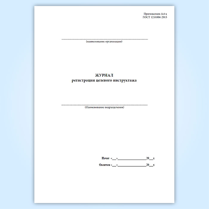 Журнал регистрации целевого инструктажа (ГОСТ 12.0.004-2015)