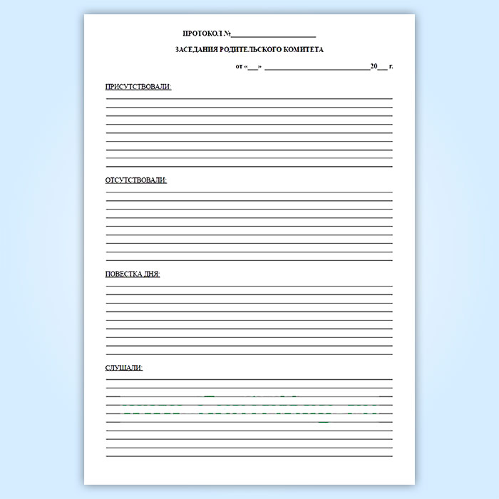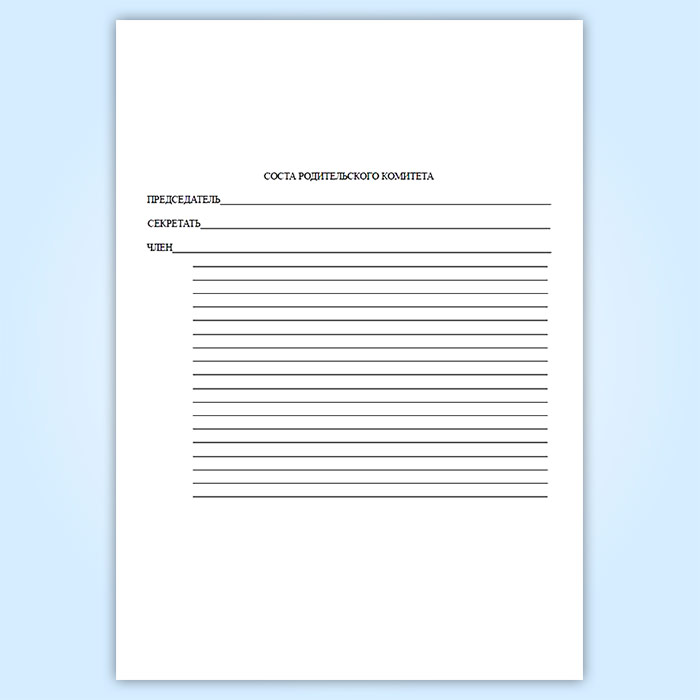 Журнал родительского комитета выполнен в форме отдельных бланков протоколов собраний родительского комитета.