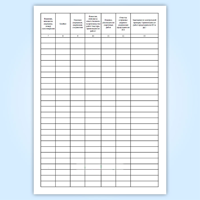 7. Фамилия, инициалы сварщика, номер удостоверения