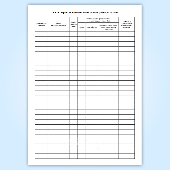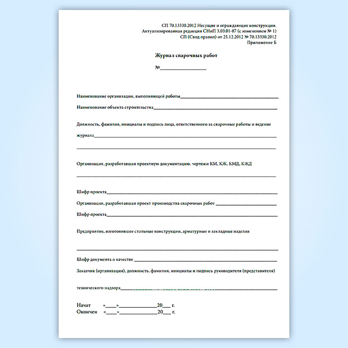 Форма журнала сварочных работ соответствует Приложению Б к СП 70.13330.2012, она отличается от формы журнала сварочных работ по СНиП 30301-87.