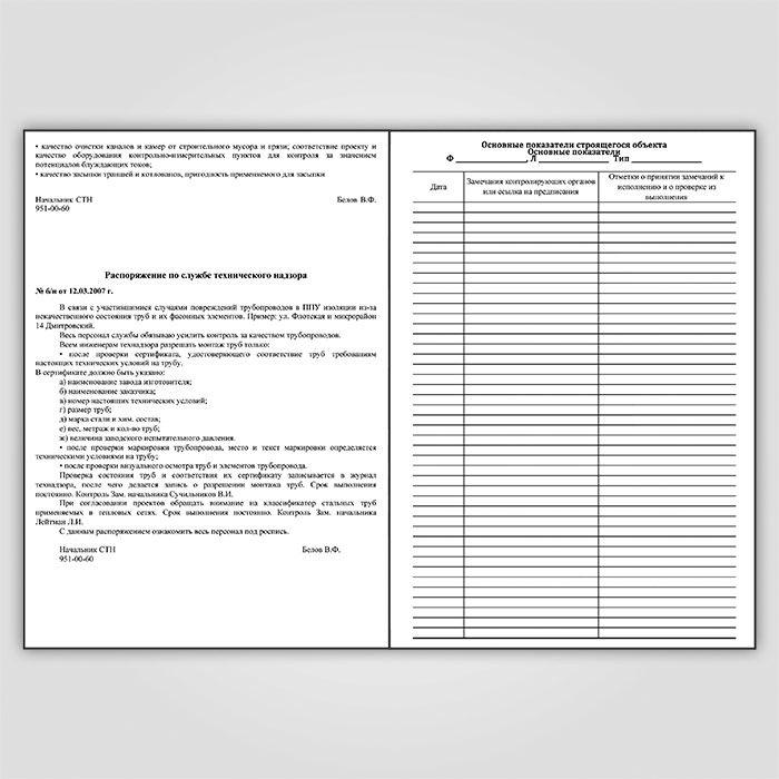 Журнал технадзора (согласно СНиП 3.01.01-85)