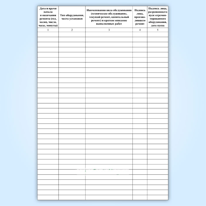 Журнал технического обслуживания и ремонта оборудования (форма 39 э)