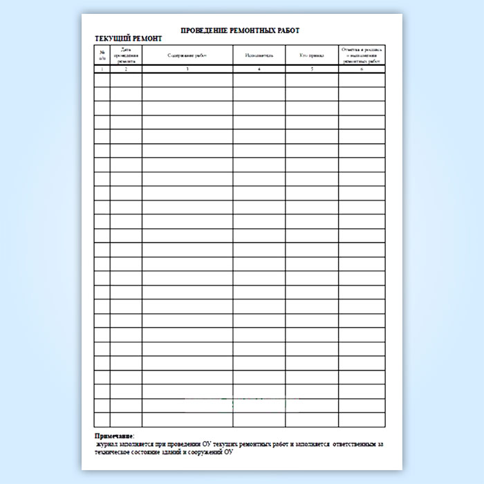 Журнал хранится у лица, ответственного за техническое состояние здания (сооружения) и предъявляется комиссиям при проведении плановых осмотров и заполняется ответственным за техническое состояние здания и сооружения ОУ.