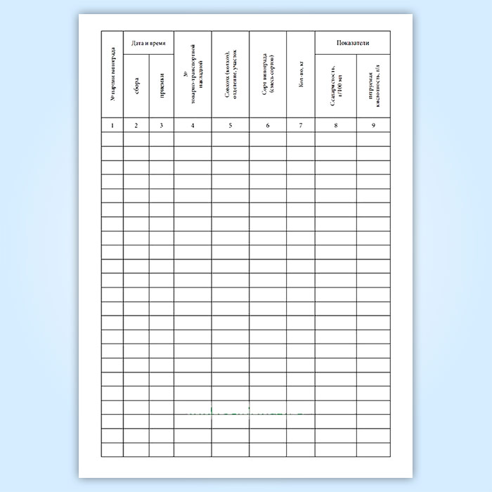 Журнал ТХМК № 2 «Контроль за приемкой винограда»