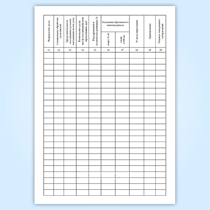 В графе 11 указывается конкретное назначение сусла: на шампанские пиломатериалы, на портвейн белый, сульфитнрованное сусло, мадеру.