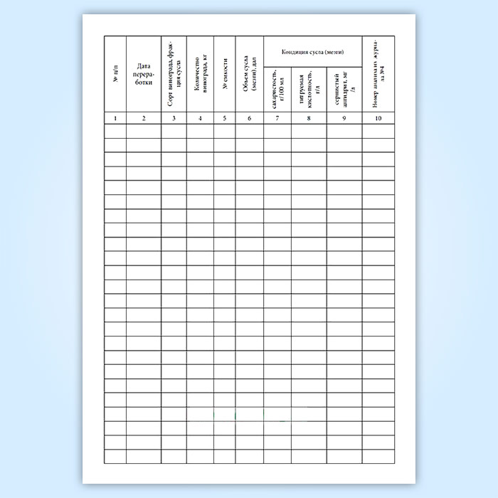 Журнал отражает основные показатели сусла, направление его дальнейшей переработки, применяемые специальные обработки (нагрев, пастой на мезге и др.).