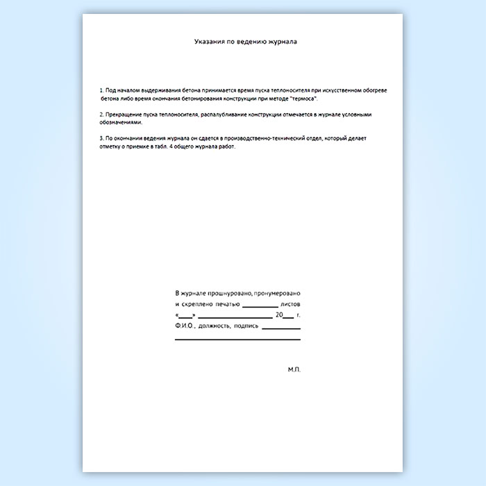 Указания по ведению журнала ухода за бетоном Форма Ф-55