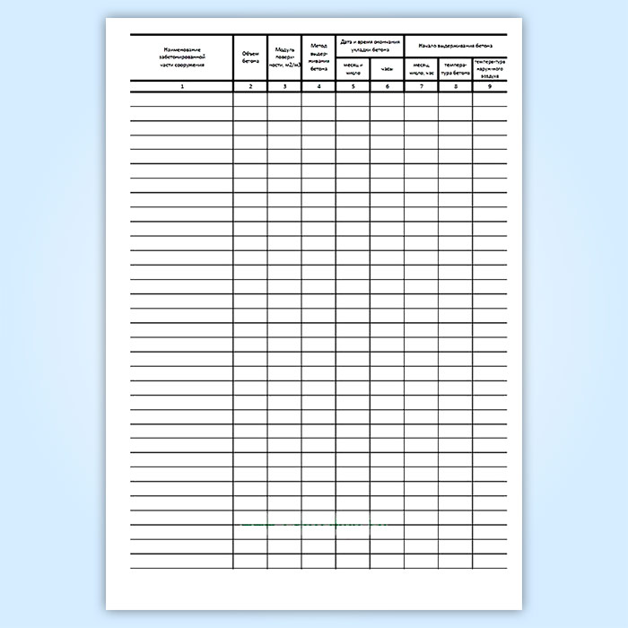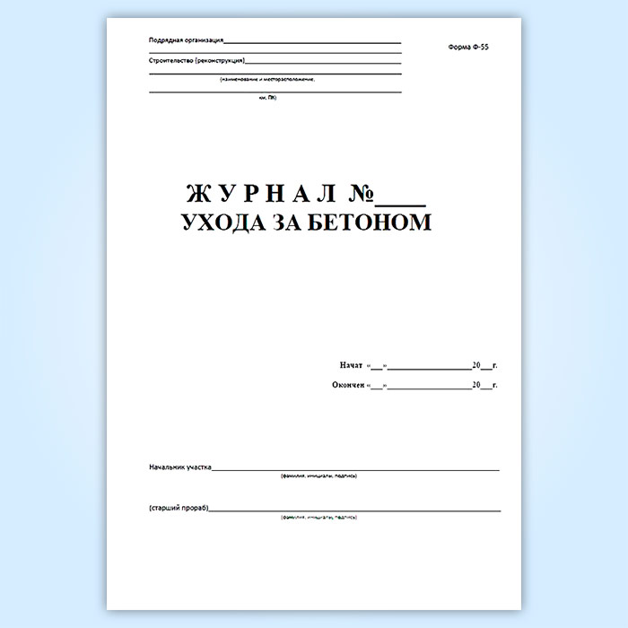 Журнал ухода за бетоном (форма Ф-55)