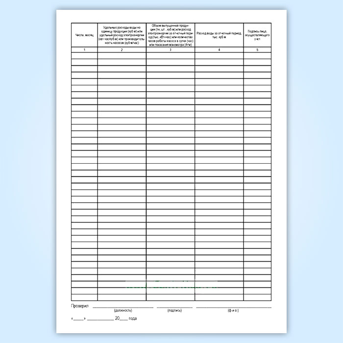 Если первичный учет вод осуществляется по расходу электроэнергии на перекачку 1 куб.м воды, а в графе 3 - общий расход электроэнергии за отчетный период (месяц, год) в тыс. квт./час, то расход воды определяется путем деления показателей графы 3 на показатели графы 2 и заносится в графу 4.