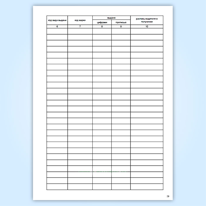 Графы для заполнения журнала учета выдачи ГСМ: