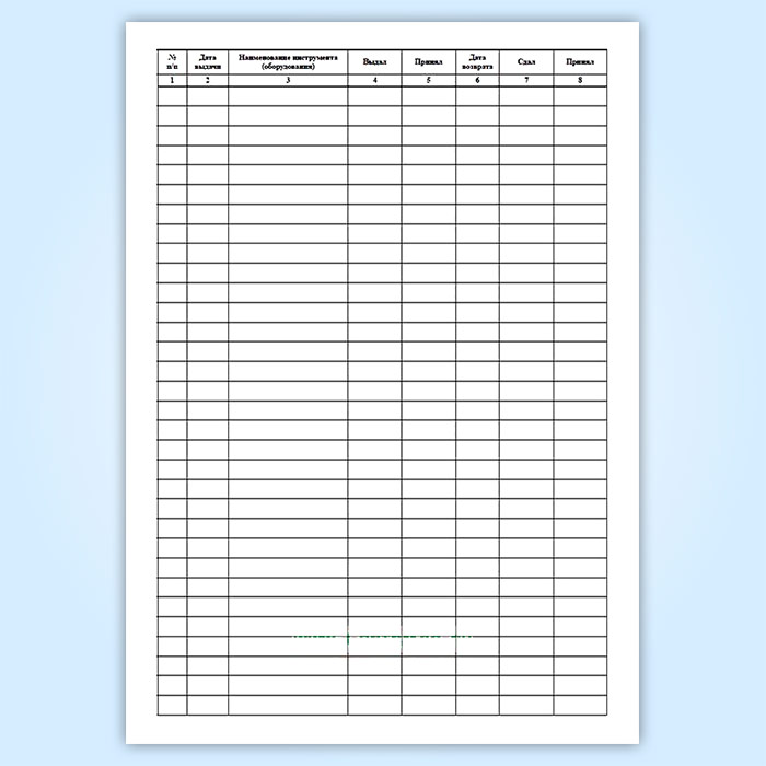 Аналогичные графы имеет и журнал учета и выдачи инструмента .