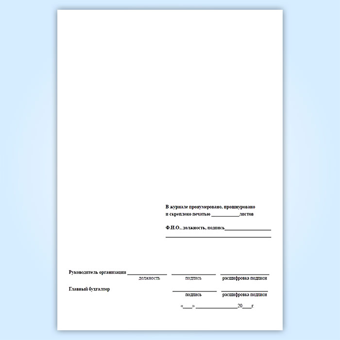 Вы получаете печатную продукцию прошнурованной и c местом для вашей печати в соответствии с действующими нормативными документами: