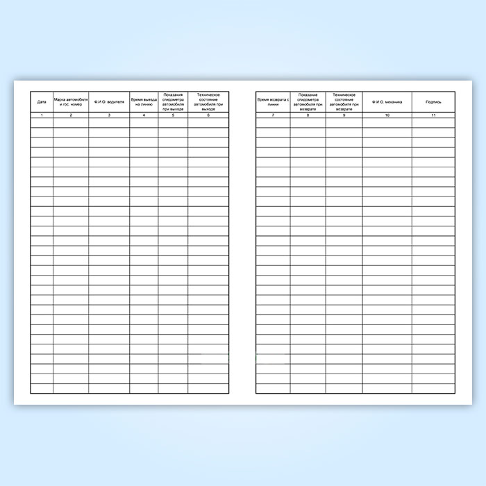 Журнал по этой форме, как правило используется на автопредприятиях всех форм собственности для учета выхода автомобиля на линию и возврата с линии для контроля за эксплуатацией и состоянием транспортного средства организации.