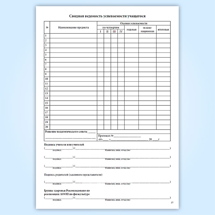 - Сводная ведомость успеваемости учащегося:
